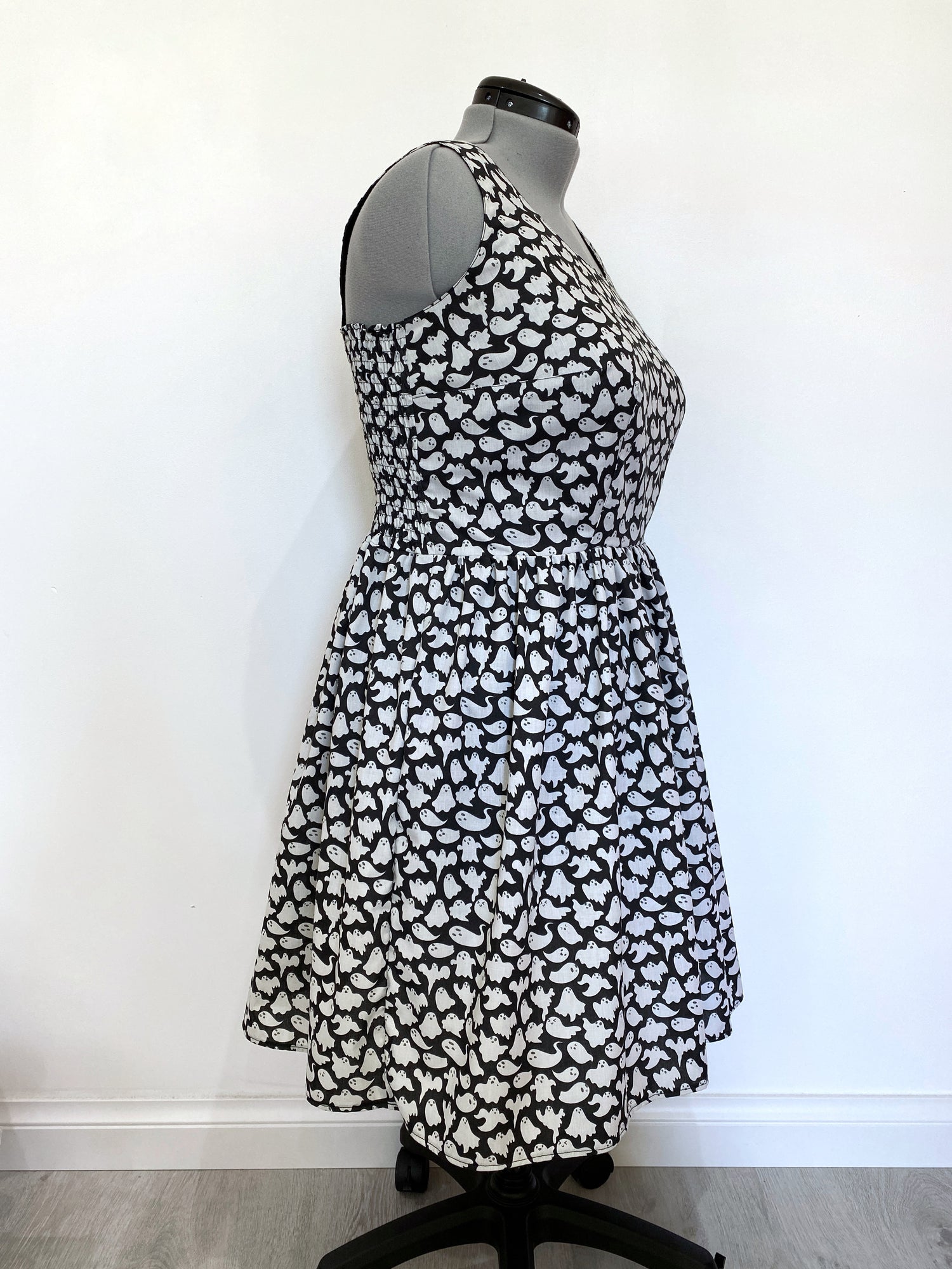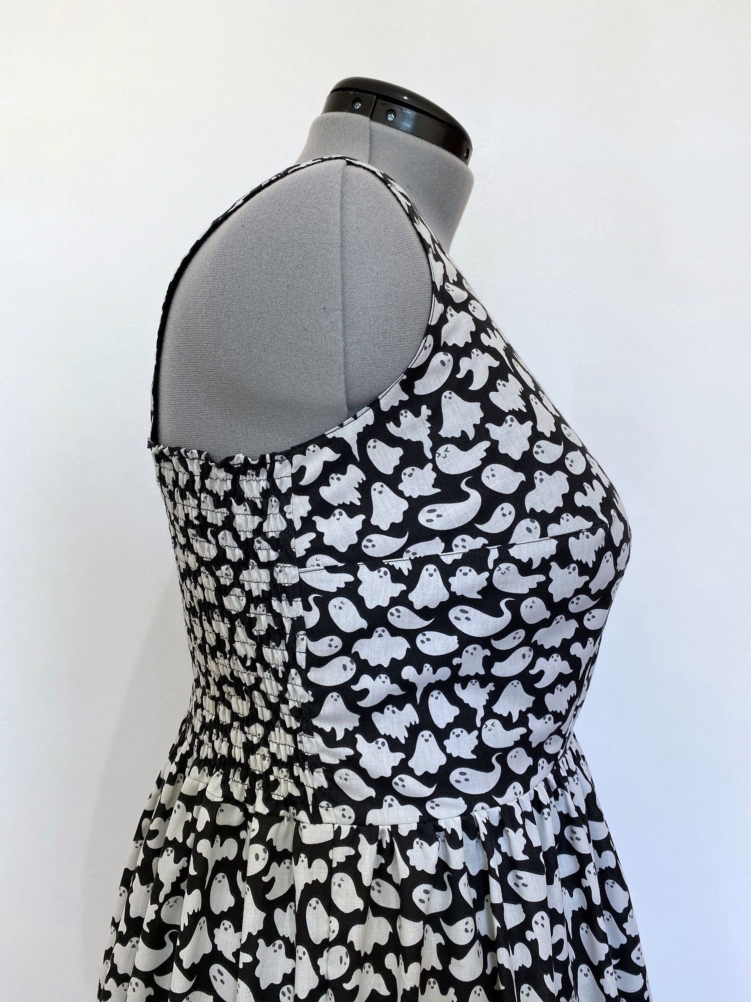 Machine washable polycotton dress, with polycotton bodice lining and pockets