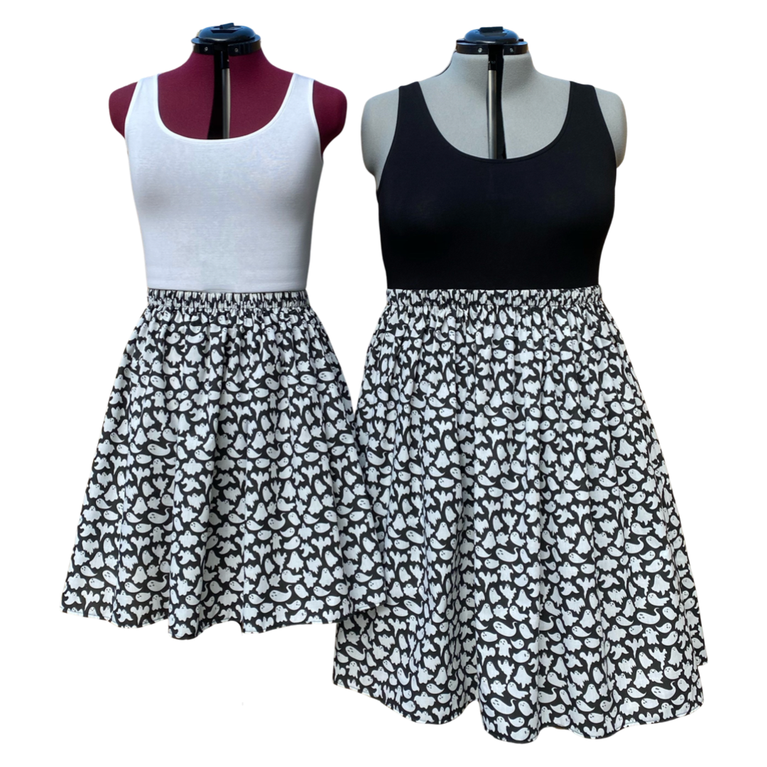 Black skirt with a white ghost print